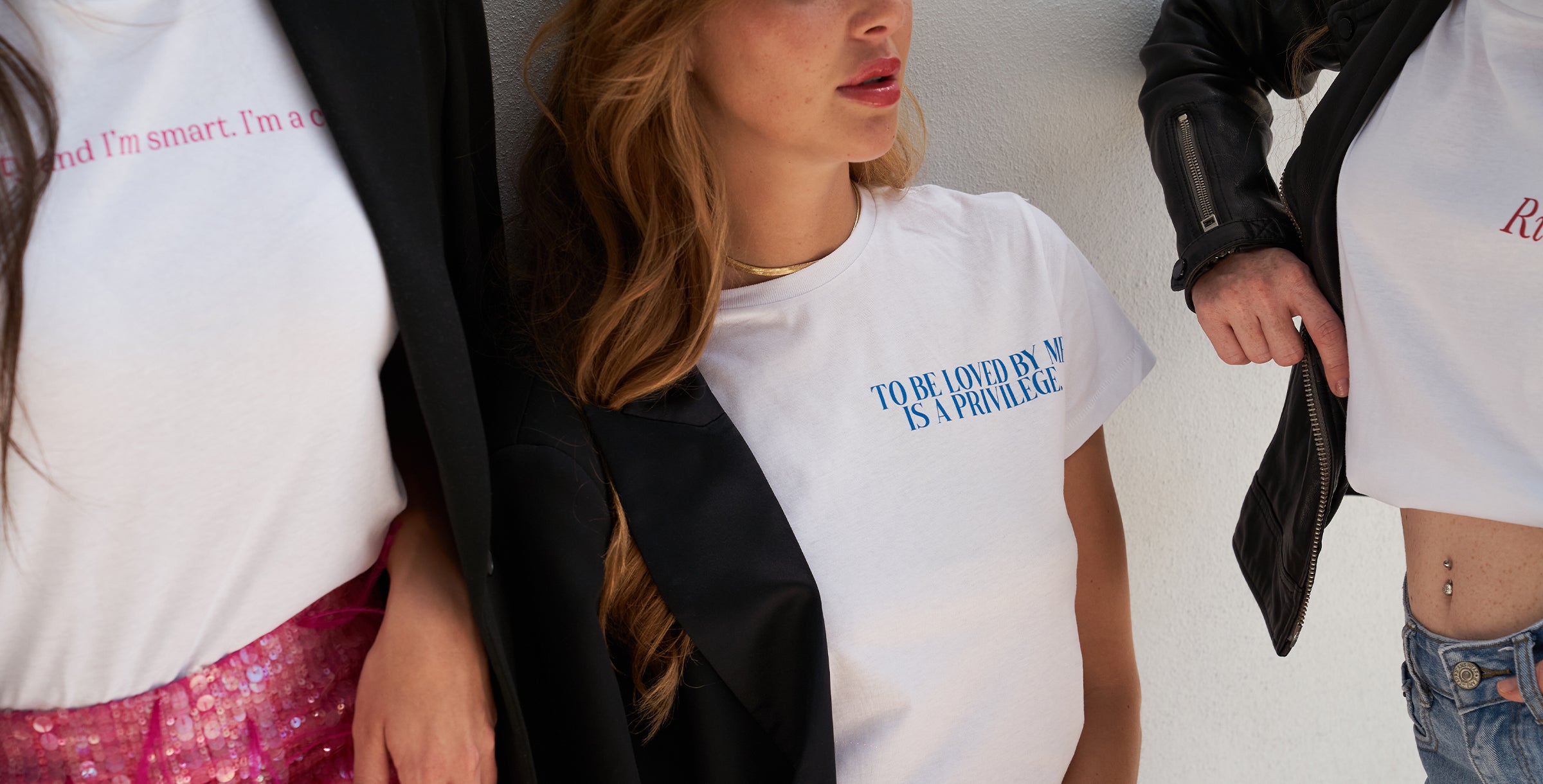 For us at Self Brand, the shirt has become a unifying closet staple. As we return to the office, travel, and make social plans, there’s something comforting fabout wearing a crisp, classic white T-shirt in the morning - fresh and dewy-faced. Perhaps we’ll add a touch of jewelry, whether that’s a pair of gold hoops or a minimalist chain necklace. But the best Self Brandwhite tees can be paired with just about everything, from comfortable at-home yoga pants to dressy skirts for the office and beyond. And what’s more iconic and representative of our daily lives than a white T-shirt and a classic pair of blue jeans?